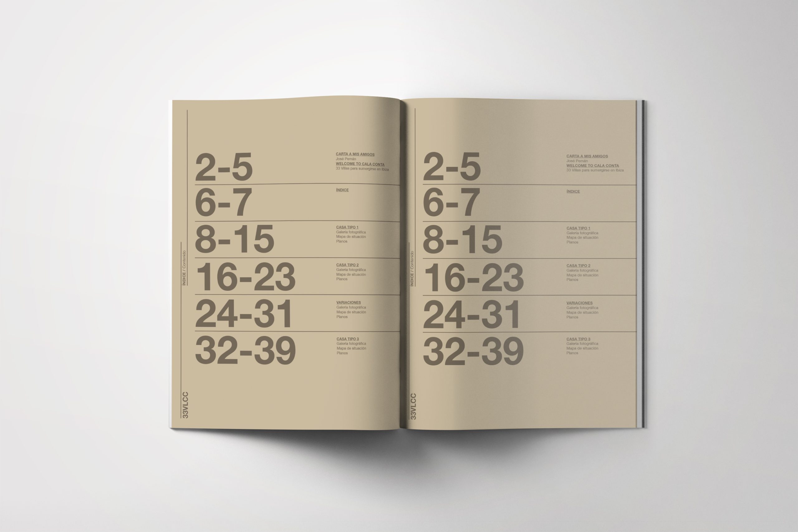 Welcome to Cala Conta Village. A proposal was developed based on a game of spatial perception enhancing the linear and geometry, based on two axes, horizontal and vertical. In this way the interior and exterior spaces are unified, eliminating barriers. The simple forms and minimalism in accordance with the architecture stand out. The line of tones are natural and ecological as well as the selection of papers for the editorial design.
