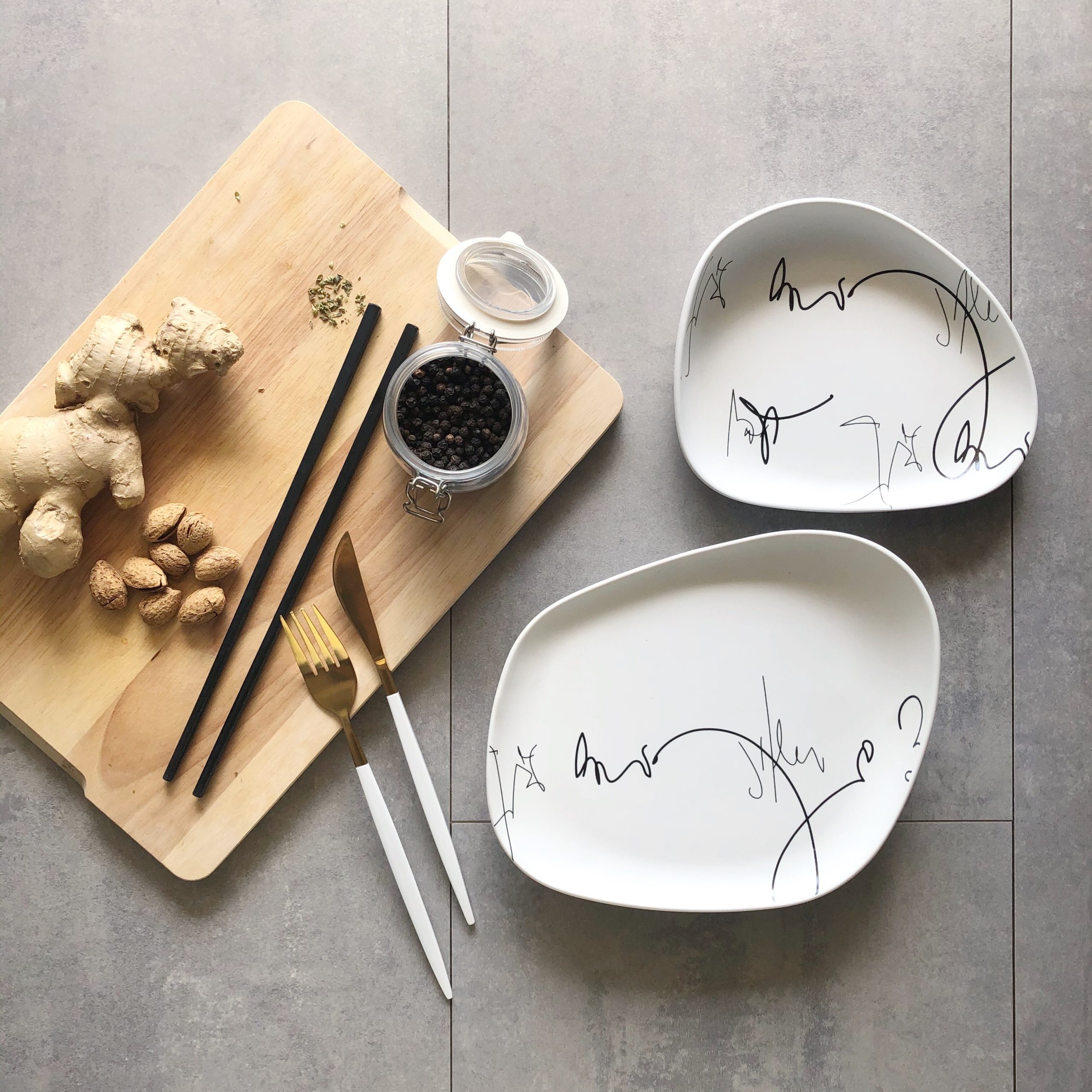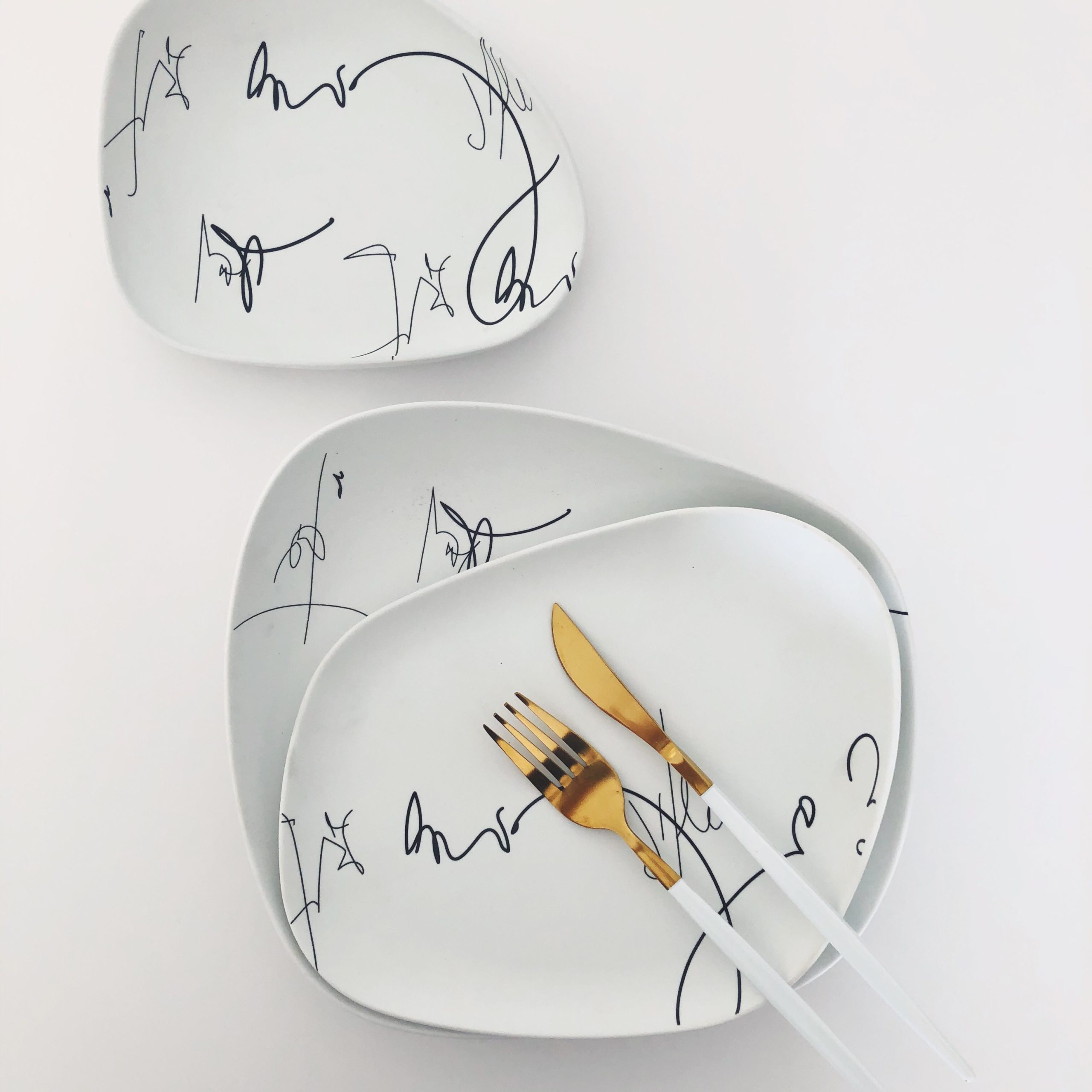 Agradecer a la diseñadora industrial Ana Roquero y al artista Willie Márquez la colaboración para una edición especial de Cookplay de un modelo de vajilla fusionado con una tipografía única.